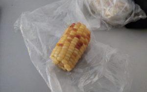 刚蒸熟的玉米是一掀开锅盖,香味就顺着空气,迫不及待地穿过整个房间,让人隔着老远就能分辨出“啊,今天晚饭吃玉米”,这种气味是极有存在感的,非常张扬的。而现在,玉米已经冷掉了,或许是装在塑料袋里的原因,只有贴近鼻子,才能慢慢感觉到玉米粒里淡淡的香气,带着一点试探,含蓄又缓慢地弥散进鼻腔。