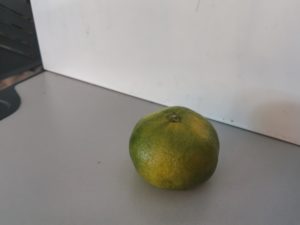 1. 椭圆形的,又矮又瘪,就算在橘子里也是个丑东西。最顶上有一个五角星样的极小的叶,黑色五个角卷曲起来,像头秃的人脑袋上仅有的几撮毛发,一拨就会掉下来。它外表坑坑洼洼,不是凹下去就是凸出来。近看之下,它由无数个像被针戳下去的小点组成,使我想起偶然看过的高尔夫球。嫩绿色、墨绿色、鹅黄色构成了它。这些颜色没有规律地分布,像画花草时的调色盘。