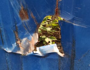 观察对象:欣健体育馆南侧,校外荒地前铁板围墙上的缺口。